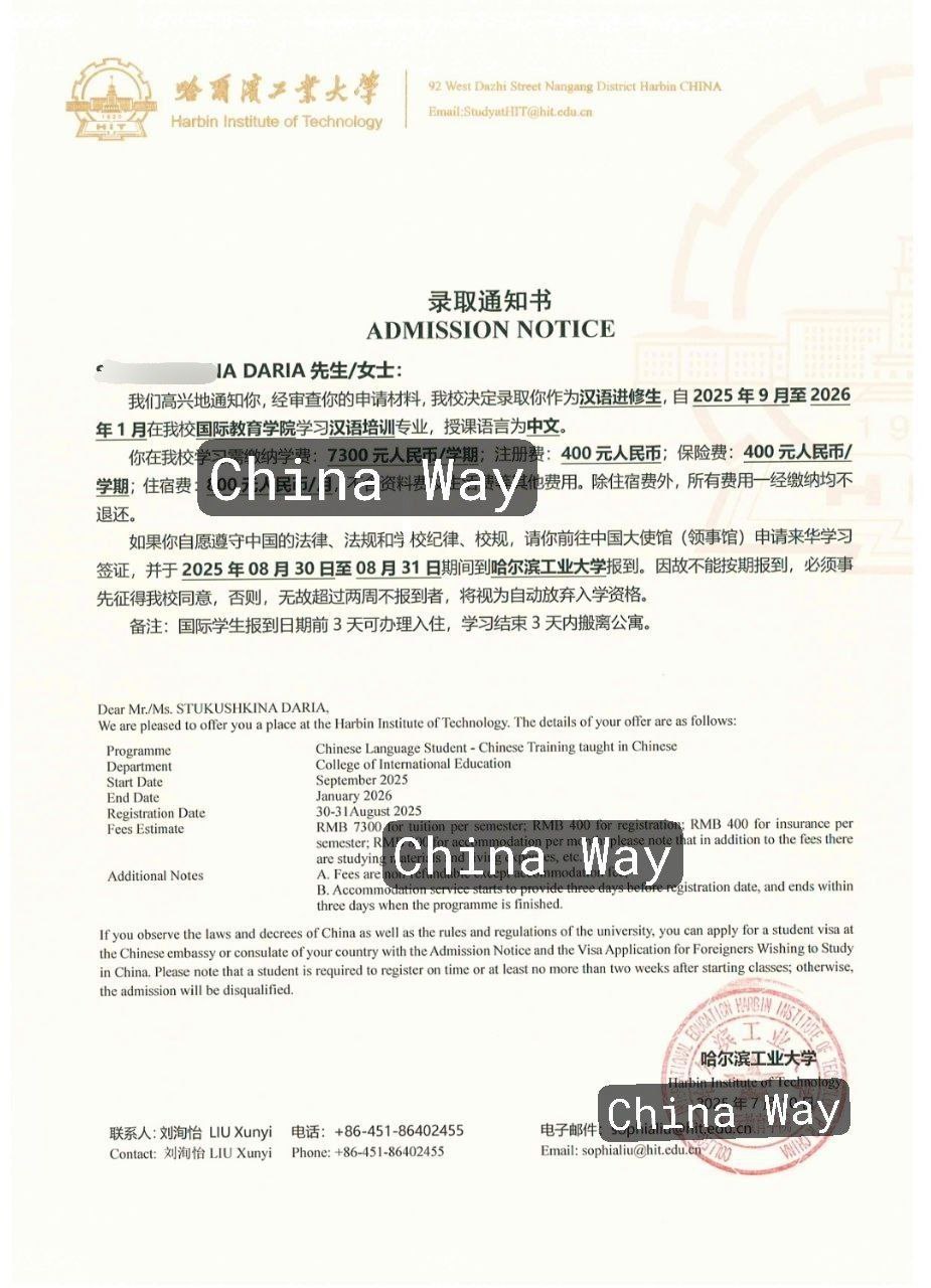 в Харбинский Политехнический Университет — один из самых престижных ВУЗов Китая,