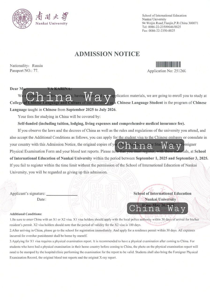 Карина поступила в Нанкайский университет. Один из наиболее престижных ВУЗов северного Китая